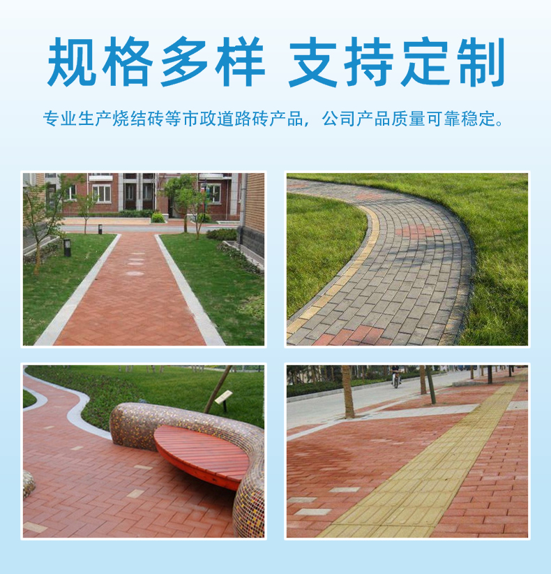 ?  廣場(chǎng)磚屬于耐磨磚的一種,具有整體性強(qiáng)、抗壓、抗折、強(qiáng)度高、不變色、不粉化、耐磨、經(jīng)久耐用等特點(diǎn)??蓮V泛應(yīng)用于一般人行道、公眾街道、大樓中庭、露天娛樂場(chǎng)、行車路、汽車專用道路、停車場(chǎng)、一般餐廳、酒店大堂、廣場(chǎng)、商業(yè)大廈、噴水池、游泳池旁邊休閑區(qū)、庭院地板、公園人行走道、城市居住小區(qū)人行走道、綠化區(qū)散步走道等。